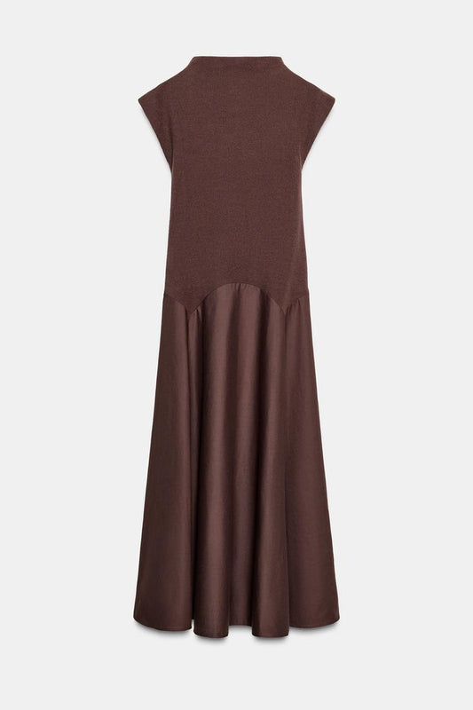 ROBE MIDI BIMATIÈRE SOFT À COL MONTANT